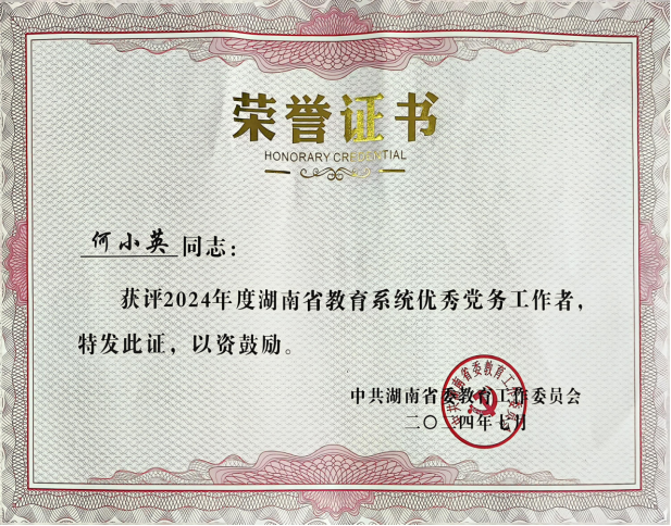 公司何小英同志荣获“湖南省教育系...