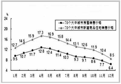 房价快速上涨势头得到初步遏制。据国家统计局统计,2010年70个大中城市新建商品住宅销售价格同比涨幅4月份曾达到12.8%的高点,此后逐月下降,年末回落到6.4%。2011年以来,房价环比下降和涨幅回落的城市数量不断增加,6月份北京新建商品房价格环比下降7%。