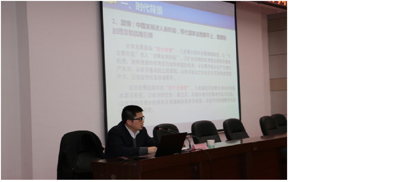 殷晓元处长从习近平治国理政思想提出的背景、过程、意义入手,重点分析了习近平治国理政思想的科学内涵与逻辑体系。他指出,习近平治国理政思想的科学内涵就是党的十八以来以习近平同志为核心的党中央治国理政的新理念新思想新战略。在详细阐明科学内涵的基础上,殷处长深入剖析了习近平治国理政思想的内在逻辑关系。最后,殷处长还概要综述了习近平治国理政思想的渊源及其理论品格。