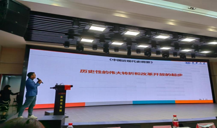 第三环节,在教学展示环节五所高校tyc122cc的教师代表进行了思想政治理论课的教学展示活动,公司李彬老师以《历史性的伟大转折和改革开放的起步》进行了教学展示。湖南高速铁路职业技术公司王晶老师、湖南财经职业技术公司胡丹老师、湖南商务职业技术公司汤艺峰老师、湖南工公司周研玮老师分别进行了精彩的教学展示。