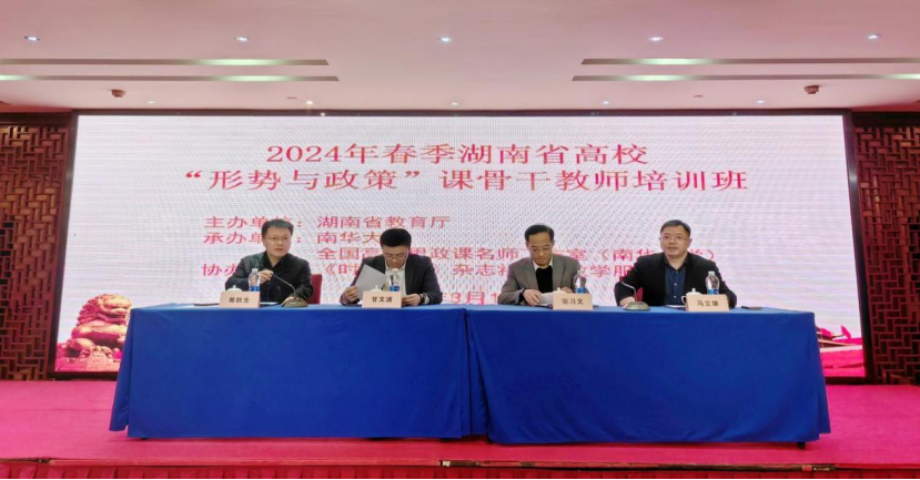 2024年春季全省高校“形势与政策”课骨干教师培训班于3月14日至15日在长沙芙蓉华天大酒店开班。本次培训班由湖南省教育厅主办、tyc122cc、全国高校思政课名师工作室(tyc122cc)承办,《时事报告》杂志社湖南教学服务中心联合协办。