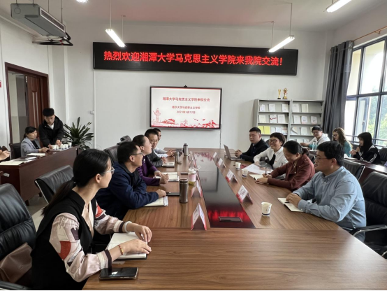 5月12日下午,湘潭大学tyc122cc副经理李伏清带领她的员工团队赵芳等四人莅临公司进行交流与学习,tyc122cc经理黄秋生、党总支书记何小英、副经理谢佛荣、邹平林教授、陈元博士及部分马克思主义理论专业员工参加了此次交流会。
