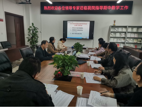 20211117日下午230,公司期中教学检查组一行8人由教务部副部长廖新元带队到雨母校区​tyc122cc崇德楼406会议室召开期中教学检查工作会议。