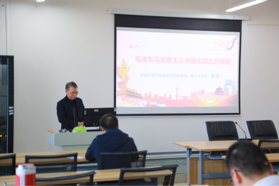 11月27日上午,公司于崇德楼418报告厅举办学术讲座,中南大学博士研究生导师彭升教授应邀作题为“毛泽东马克思主义中国化提出的原因”的讲座,讲座由周江平副经理主持,公司全体在校研究生与部分教师参加本次活动。