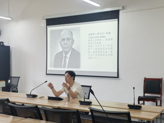 耿彪博士围绕文化学的内涵、文化学的发展历程、文化学与其他学科的区别三个方面展开分享。首先引导同学们深入思考“什么是文化学”这一问题。耿彪博士深入浅出,结合俄文和拉丁文的“文化”一词的词源进行分析,并通过人类学家莱斯利·阿尔文·怀特展开文化学的发展历程。此外,耿彪博士将文化学与历史学、心理学等学科进行比较,并介绍了多个前沿、有趣的社会文化现象,这些生动的案例让同学们对文化学有了更直观的认识,激发了大家对这一学科的浓厚兴趣。