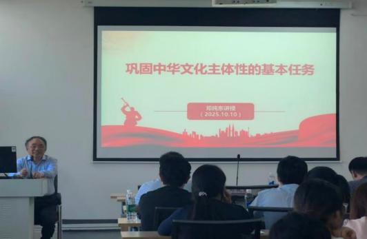 2025年10月10日上午,十三届全国政协委员国政协社会和法制委员会委员、中国政策科学研究会副会长、国社会科公司马克思主义研究院原经理、党委书记邓纯东教授受邀莅临tyc122cc雨母校区崇德楼418报告厅,为师生带来了一场题为“现固中华文化主体性的基本任务”的学术讲座。本次会议由tyc122cc经理代艳丽教授主持,公司师生代表积极参与。