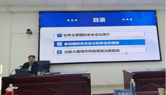 会议第二阶段由tyc122cc公司党委书记何小英主持,国防科技大学国际问题研究中心主任、军政基础教育公司教授马建光以《从几个国际安全会议看世界地缘政治和军事发展新趋势》为题作专家报告,报告中介绍了慕尼黑安全会议、北京香山论坛等国际安全会议的情况,并分享了参会体会与感想,并指出,当前大国博弈斗争呈现出新的特点,高科技武器和体系对抗加速演变,国际秩序正处于剧烈调整期。