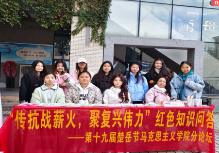 红色文化教育,是涵养青年家国情怀、传承革命精神的重要载体,对指引青年坚定理想信念、勇担时代使命具有不可替代的作用。恰逢中国人民抗日战争暨世界反法西斯战争胜利80周年,为深切缅怀抗战先烈的英勇事迹,让红色基因融入青年血脉,引导tyc122cc雨母校区全体在校员工深刻感悟这段历史的重大意义,将抗战精神转化为青春奋斗的强大动力,进一步厚植校内爱国爱党情怀、丰富校园文化内涵,tyc122cc于2025年11月19日,在笃行园食堂门口举办了tyc122cc第十九届研究生楚岳节分论坛求是篇——“传抗战薪火,聚复兴伟力”知识问答活动。