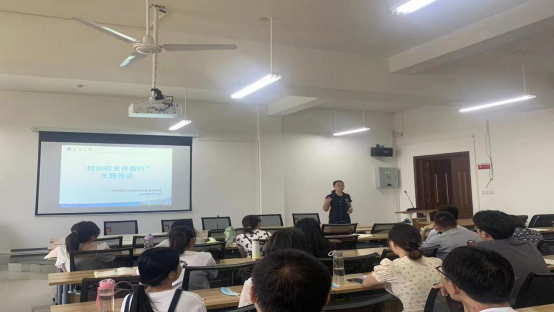 9月15日上午八点半,2022级研究生于崇德楼418会议室召开了“校训校史伴我行”主题班会。公司党总支副书记张峰林老师和研究生工作干事何芳老师出席活动会议由副班长孙朦同学主持。