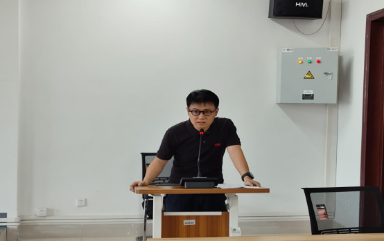 随后,公司导师代表、在校生代表与新生代表依次上台发言。导师代表、副经理范毅强对2025级新生的到来表示热烈欢迎,并以“十大武器”为喻,分享了一段深刻而富有启迪的求学感悟。范毅强副经理特别强调,在刻苦钻研的同时,也要照顾好身体与情绪,保持身心健康。他寄语新生“来时有光,走时应带去更多光”,勉励大家以伦理滋养初心、以实践丰盈理想,在未来的求学岁月中不断成长。