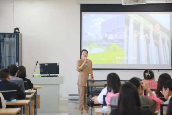 讲座开始,张峰林副书记首先对两位员工重回母校为师弟师妹们作分享讲座表示欢迎与感谢。接着,谢英员工结合自己的工作经验作了题为《“路”——“录”》的就业指导讲座,她围绕公务员的发展历程和变革趋势、公务员录取的相关流程、公务员考试环节、体检、考察等一系列内容做了详细的分享。尤其是针对公务员考试环节,谢英员工结合自己丰富的工作经历给同学们做了极其珍贵且有价值的指导。谢英员工语重心长地强调,考公一定要多关注时事,多阅读官方权威媒体评论员文章,多注重语言表达能力的锻炼。她还为同学们普及了工伤预防的概念、作用和工伤事故的危害。