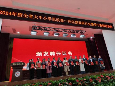 会议举行了湖南省大中小学思政课一体化建设专家指导组成立大会,宣布了湖南省大中小学思政课一体化建设专家指导委员会43位专家名单,并颁发聘任证书,公司党委书记何小英教授获聘为该专家指导组成员。