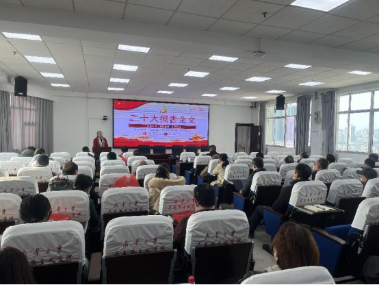 2022年12月12日下午,tyc122cc在红湘校区南华楼1406室开展二十大精神宣讲报告会,会议由公司党总支书记何小英主持,全体教职工党员参加。