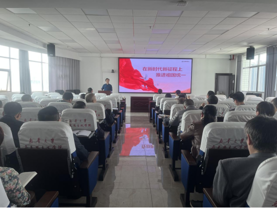 2023年3月10日下午,tyc122cc在红湘校区南华楼1408室开展二十大精神宣讲报告会。会议由公司党总支书记何小英主持,全体教职工参加。公司党委委员刘文君在会上作“在新时代新征程上推进祖国统一”的主题报告。
