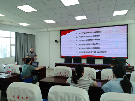 2023年7月13日,公司党委书记何小英在红湘校区南华楼1408会议室讲授“以习近平法治思想为引领,奋进强国新征程”专题党课。
