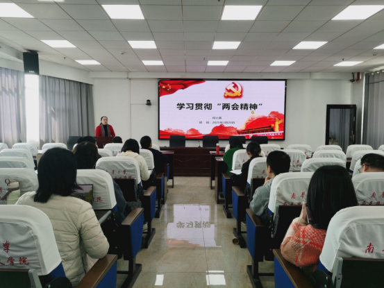 2025年3月20日下午在红湘校区南华楼1408室,公司党总支书记何小英为公司全体教职工作“全国两会”精神宣讲报告。